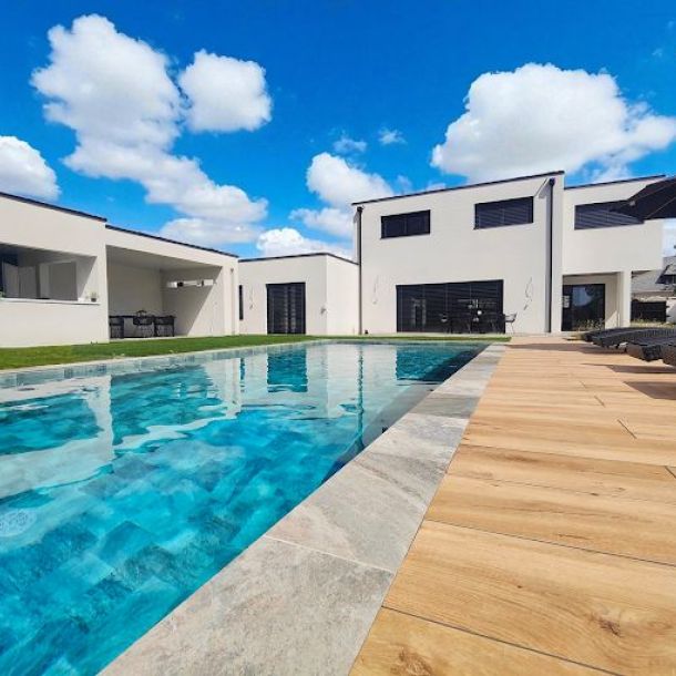 Margelles, terrasses, équipements de confort… nous vous accompagnons dans l’aménagement de votre piscine, partout en Loire-Atlantique (44) et Ille-et-Vilaine (35).