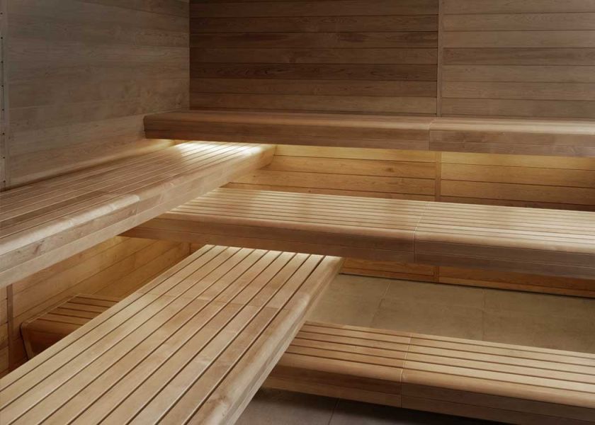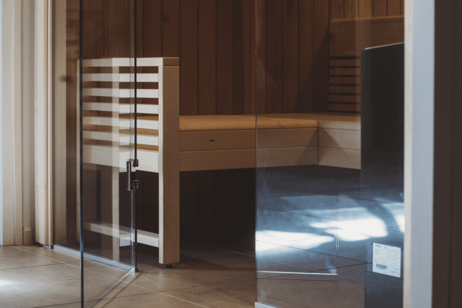 Sauna, hammam et douche sensorielle réunis pour une détente complète.